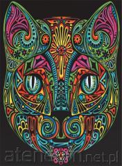 Wypukłe linie ułatwiają nie wychodzenie za linie, a na głębokiej matowej czerni nie widać drobnych potknięć przy kolorowaniu. Welwet nałożony jest na papier przyklejony do sztywnej tektury, dzięki czemu obraz nie wymaga ramki jeśli zdecydujemy się go powiesić na ścianie.