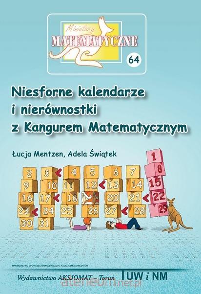 Drodzy Czytelnicy, czy zwróciliście uwagę, jakie są pierwsze słowa na karcie z zadaniami konkursu Kangur Matematyczny? Tak, na pierwszej stronie testu widnieją słowa Kangourou sans Fronti`eres. Po francusku oznaczają one Kangur bez granic. Konkurs bowiem przekroczył granice wielu państw, pokonał bariery językowe. Jest to największy i najpopularniejszy na świecie konkurs z matematyki. Uczestniczą w nim na przykład wasi rówieśnicy ze wszystkich 7 krajów sąsiadujących z Polską. Tego samego dnia konkurs ten odbywa się w większości państw Europy, również w Azji, Afryce, Ameryce Północnej i Południowej, ogółem w ponad 70 krajach. O czym jest ta książeczka. Podobnie jak trzy poprzednie miniatury autorek, pierwsza część książeczki napisana jest w konwencji matematycznych spotkań Kangura z Frankiem i Helenką. Trudno dziś sobie wyobrazić, jaki zapanowałby chaos, gdyby każde państwo używało własnych dat, własnego systemu kalendarzowego. Pierwszy rozdział miniatury traktuje właśnie o kalendarzu, opowiada o historii jego powstania. Oprócz matematyki Czytelnicy znajdą w tym rozdziale sporo ciekawostek, okraszonych niekiedy dawką humoru. W rozdziale drugim Czytelnicy poznają japońską łamigłówkę, takiego brata popularnego sudoku. W przystępny sposób na kilku przykładach pokazane są jej zasady. Oprócz tego uczniowie znajdą łatwiejsze i trudniejsze diagramy logiczne do samodzielnego rozwiązania. Kolejne dwa rozdziały można traktować jako dobry trening przed następnym konkursem Kangur Matematyczny. Zawierają one dwa zestawy zadań ułożonych na wzór testów konkursu w kategorii Maluch i Beniamin. Na końcu Czytelnicy znajdą odpowiedzi do wszystkich zadań, a także przykładowe rozwiązania bądź wskazówki do niektórych z nich. Miłej zabawy, udanego startu w kolejnych edycjach Kangura i innych matematycznych konkursach oraz zwycięskich zmagań z matematyką życzą Czytelnikom autorki i Kangur Matematyczny.
