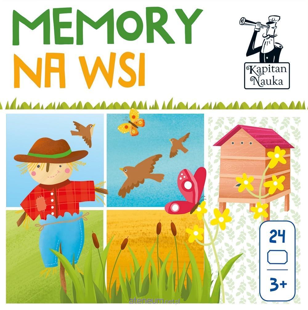 Gra rozwijająca pamięć i dziecięce zainteresowania Memory Na wsi to prosta i wciągająca gra dla przedszkolaków, ćwicząca pamięć i spostrzegawczość, a przy tym rozwijająca wiedzę o świecie i dziecięce zainteresowania. Dzięki regularnym ćwiczeniom pamięci dzieci na dłużej zapamiętują ciekawostki związane z interesującym je tematem, stając się specjalistami w ulubionej dziedzinie , a także lepiej radzą sobie z rozumieniem tekstów oraz szybciej opanowują nowe umiejętności, np. potrafią zastosować działania matematyczne przy rozwiązywaniu codziennych problemów. Skuteczny trening pamięci, koncentracji i spostrzegawczości Gra Memory Na wsi polega na zapamiętaniu ułożenia zakrytych kart i znalezieniu jak najwięcej par. W zestawie znajdują się 24 karty, na których przedstawiono wiejski krajobraz, maszyny i zwierzęta. Kolorowe ilustracje Gabrieli Bieniek-Zaremby prezentują 12 różnorodnych scenek rodzajowych, m.in. kombajn w czasie żniw, rolnika podczas prac ogrodowych oraz krowę na pastwisku. Jednak obrazki nie są identyczne. Dzięki subtelnym różnicom mały gracz uczy się rozpoznawać te same obiekty w różnym, choć podobnym kontekście. Na dodatkowym kafelku znajdują się główne elementy kart z podpisami. Karty do gry zostały wykonane z grubej tektury, co gwarantuje bezpieczną zabawę oraz wytrzymałość nawet podczas najbardziej emocjonujących rozgrywek. Rozwój: pamięć, koncentracja, poznawanie świata, spostrzegawczość W serii również Memory Ocean 3+ Memory Dinozury 3+ Memory Pojazdy 3+