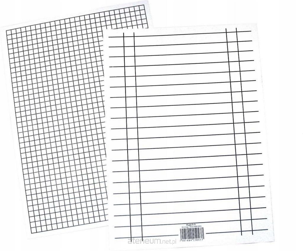Liniuszek zadrukowana jest z jednej strony liniami oddalonymi od siebie o 1 cm, a z drugiej kratką o odstępie pomiędzy liniami 5 mm.
