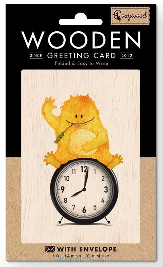 Karnet drewniany C6 + koperta Kobieta ze słoikiem