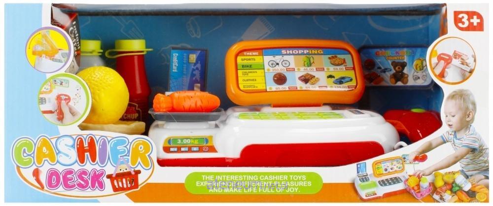 Zalety produktu: czytnik do produktów posiada efekty świetlne Poprzez zabawę w sklep, dziecko może w łatwy i przyjemny sposób nauczyć się zasad robienia zakupów, wartości pieniądza, odliczać i wydawać resztę. Dzieci uwielbiają edukacyjne zabawy, których mogą naśladować dorosłych! Zestaw posiada kasę fiskalną oraz czytnik produktów i wagę.