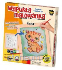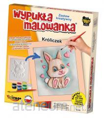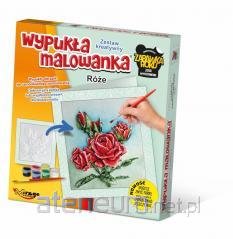 Wypukła Malowanka od Mirage Hobby to Zestaw Kreatywny dla osób powyżej 5. roku życia. Zestaw zawiera wypukły, plastikowy, kształtny obrazek, farbki akrylowe, pędzelek oraz ramkę z kartonu do postawienia lub powieszenia. Zmyj obrazek przy użyciu ciepłej wody, mydła i szczoteczki, najpóźniej do 15 min. po pomalowaniu. Obrazek ma odpowiedni do wzoru wypukły kształt, który jest dobrze odczuwalny w dotyku. Produkt jest wymyślony i wyprodukowany w Polsce! Wszelkie prawa zastrzeżone. Każda Wypukła Malowanka to konkretny wzór z danej serii. Kolekcja jest podzielona na różne serie np. Koty, Psy, Konie, Futrzaki, Dinozaury, Jednorożce, Kwiaty, Sport, Bajki, Zoo i inne. Seria Wypukła Malowanka Zestaw Kreatywny została nagrodzona Wyróżnieniem Zabawka Roku 2018.