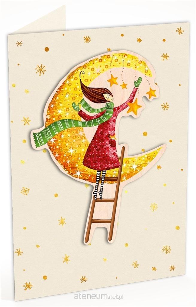 Karnet drewniany C6 + koperta Święta Kobieta Sanki