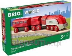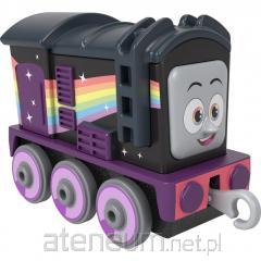 Kolejka z serii Trackmaster świetnie odwzorowuje bajkowego bohatera. Nie posiada napędu porusza się wyłącznie popychana rączką dziecka. Z przodu i z tyłu lokomotywy znajdują się plastikowe haczyki, dzięki którym połączymy ją z wagonikami lub innymi pojazdami z linii.