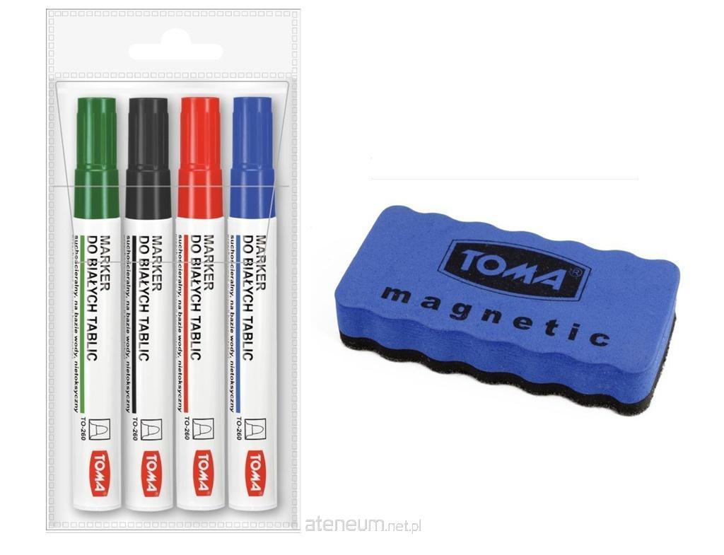 Marker do tablic 4 kolory + magnes + ścierak TOMA