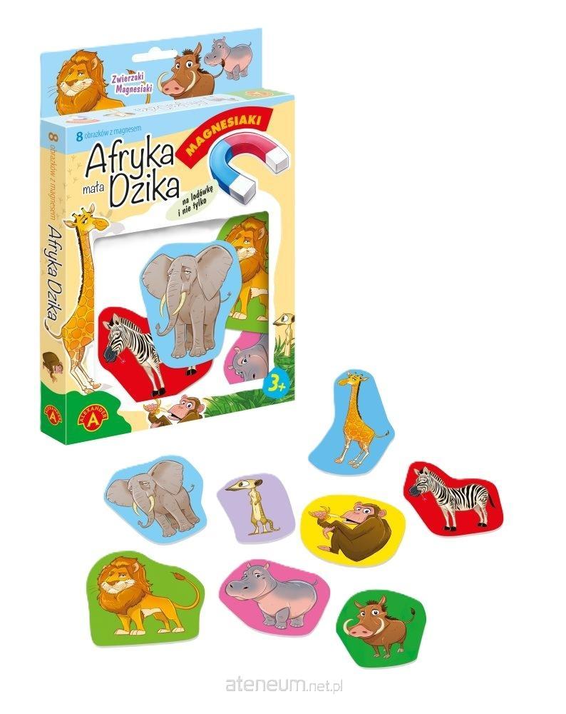 Magnesiaki Mała Afryka Dzika to zestaw tematycznych obrazków, powleczonych magnetyczną folią na odwrocie. Dzięki temu obrazki można układać nie tylko na stole lub podłodze, można je również ustawiać na pionowej ścianie lodówki lub innych metalowych płaszczyznach. Serię wyróżnia przede wszystkim bardzo ładna grafika, duże rozmiary, oraz gruba tektura, pozwalająca dzieciom na łatwy chwyt. Strona z obrazkiem powleczona została folią, aby łatwo było je czyścić.