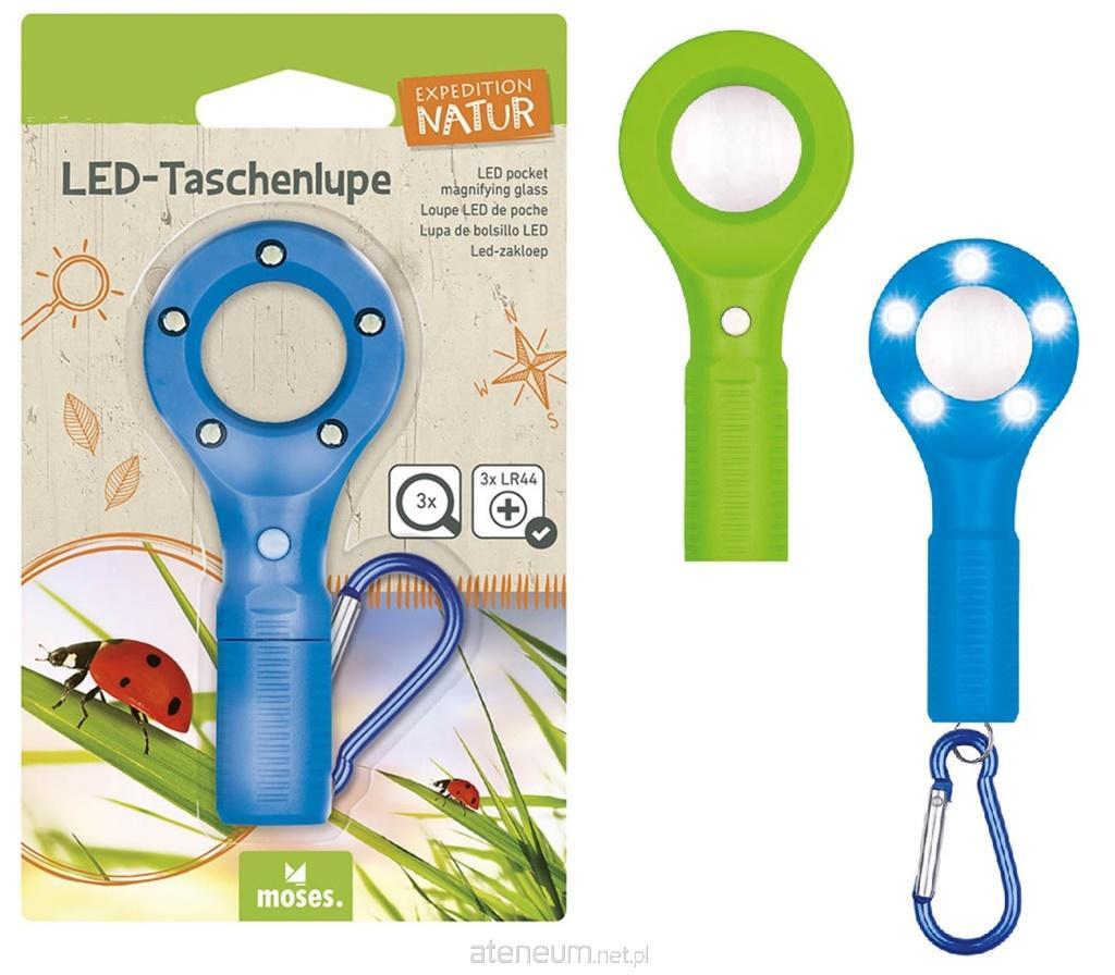 Mix kolorów. Towar wysyłany losowo. Breloczek - Kieszonkowa Lupa z podświetleniem LED. Fascynująca Kieszonkowa Lupa LED z kolekcji Expedition Natur. Daje małym odkrywcom wgląd w fascynujący świat przyrody. Praktyczna, mała, z łatwością mieści się w kieszeni. Wyposażona w karabińczyk ułatwiający przypięcie do wszystkiego. Ma potrójne powiększenie. Drobne szczegóły ujawniają się w trybie oświetlenia z 5 diodami LED. W zestawie ogniwa guzikowe (3 x LR 44). UWAGA! Nie świeć bezpośrednio w oczy!