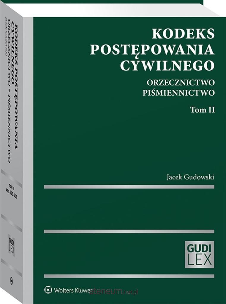 Tom II zawiera orzecznictwo Sądu Najwyższego z lat 19182020 oraz piśmiennictwo z lat 18472020, dotyczące art. 125315 Kodeksu postępowania cywilnego lub zachowujące ścisły związek z jego przepisami. Na publikację składa się część bogatych zbiorów bibliograficznych autora, obejmujących prawie 100 000 pozycji. Liczy ona ok. 15 000 orzeczeń przypisanych do poszczególnych artykułów Kodeksu oraz tyleż pozycji piśmiennictwa. W zbiorze umieszczono wszystkie orzeczenia opublikowane ze wskazaniem opracowanych do nich glos, notek, omówień lub komentarzy niepublikowane natomiast tylko te, które autor uznał za ważne, istotne lub z innych powodów warte upowszechnienia. Czytelnik zmagający się z jakimś problemem prawnym lub odczuwający niedostatek wiedzy może sięgnąć do wykazów orzecznictwa i piśmiennictwa umieszczonych pod określonym artykułem Kodeksu postępowania cywilnego z łatwością znajdzie tam wszystkie orzeczenia dotyczące tego artykułu lub kwestii prawnej w tym artykule unormowanej. Znaczenie poszczególnych orzeczeń zostało zaznaczone przez autora stosownymi piktogramami. Dzieło będące owocem ponad 40-letniej bibliograficznej działalności autora zostało sporządzone z nadzwyczajną, niespotykaną już dzisiaj skrupulatnością i rzetelnością. Stanowi kontynuację cyklu GUDI-LEX, rozpoczętego w 2018 r. zbiorem orzecznictwa i piśmiennictwa do Kodeksu cywilnego (4 tomy, 5 woluminów). Jest także zapowiedzią wydania podobnej publikacji dotyczącej Kodeksu rodzinnego i opiekuńczego.