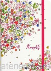 Opis produktu -gramatura: 80 g -liczba stron: 192 -okładka: twarda -materiał: skóra ekologiczna w drobną krateczkę -wymiary: 145x210 mm -pionowa gumka zamykająca -gumka na długopis -zaokrąglone rogi -perforowane kartki -wyklejka z czarnego papieru ozdobnego -wnętrze: linia -koperta na luźne karteczki -2 wstążki: jedna w kolorze okładki druga czarna