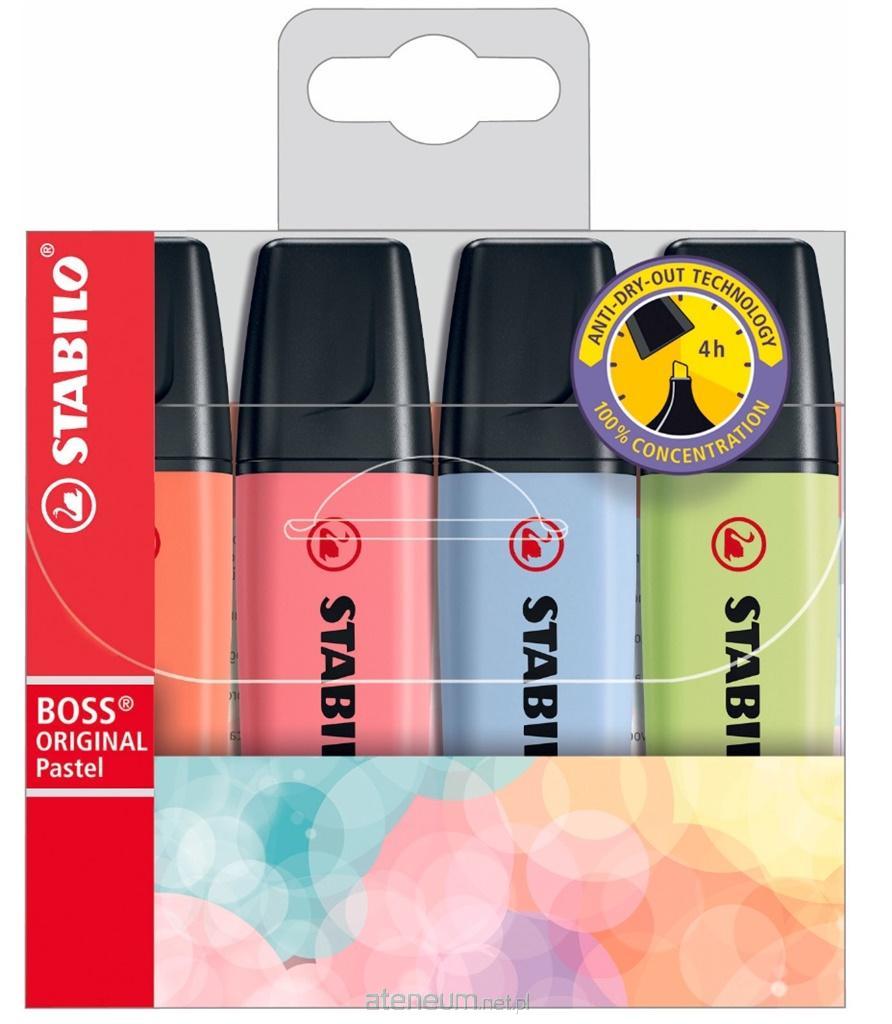 STABILO BOSS ORIGINAL Pastel - prawdziwy klasyk wśród zakreślaczy i niedościgniony wzór! Dostępny jest w 9 kolorach neonowych a także w 10 kolorach pastelowych. Razem aż 19 możliwości do wyboru. Grubość linii od 2 do 5 mm pozwala na zakreślanie tekstów o różnej wielkości. Nadaje się też do pisania, ozdabiania, hand letteringu. Technologia Anti-dry zabezpiecza tusz przed zasychaniem, dzięki czemu można go używać nawet przez 4 godziny i mieć pewność, że nie zaschnie. W trosce o środowisko wszystkie czarne elementy zakreślacza wykonane są z plastiku pochodzącego z recyklingu. Plastikowe etui zawierające 4 szt. zakreslaczy w kolorach pastelowych: niebieski, czerwony, limonkowy, różowy ciemny.