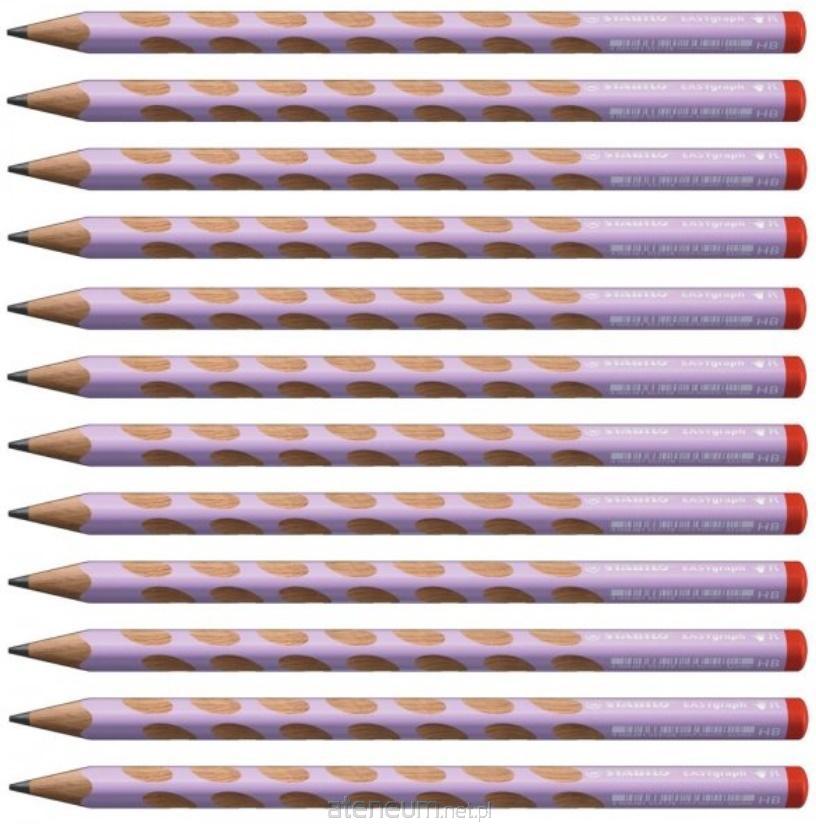Opakowanie zbiorcze 12 sztuk. STABILO EASYgraph - gruby, ergonomiczny ołówek o trójkątnym przekroju zapewniający wygodny chwyt podczas pisania i rysowania. Dostępny w wersji dla osób prawo- i leworęcznych, limitowana seria w 3 kolorach pastelowych. Specjalny kod kolorystyczny umożliwia rozpoznanie wersji: żółty kolor końcówki - dla leworęcznych, czerwony kolor końcówki - dla praworęcznych. Antypoślizgowe nacięcia na całej obudowie ołówka sprawiają, że nawet po zatemperowaniu palce znajdują wygodną pozycję do trzymania. Średnica grafitu 3,15 mm jest idealna do nauki pisania. Na ołówku znajduje się miejsce, gdzie można go podpisać. Ołówek dostępny jest w twardości HB. W kolekcji klasycznej dodatkowo dostępny jest w twardościach B i 2B. Wersja dla praworęcznych, kolor liliowy pastelowy.
