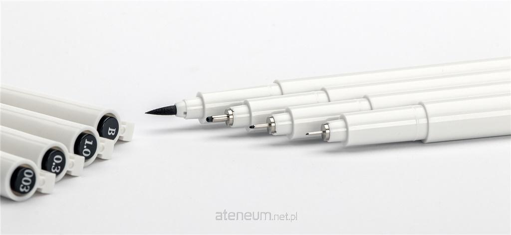 Cienkopis Manga z tuszem na bazie wody jest produktem nadającym się idealnie do tworzenia szkiców, komiksów, projektów graficznych, ale również zdobienia, pisania i kaligrafii. Cztery grubości końcówek fibrowych i igłowych pozwalają na dobranie grubości idealnie dostosowanej do własnych potrzeb. Cienkopisy Manga o końcówkach igłowych (grubość 0.03, 0.3 oraz 1.0 mm) pozwalają na utrzymanie stałej linii, a końcówka pędzelkowa pozwala na kontrolowanie grubości linii według własnej fantazji. Tusz jest odporny na rozmazywanie się. Cztery rodzaje końcówek: 0.03 mm 0.3 mm 1.0 mm końcówka pędzelkowa Kolor: czarny