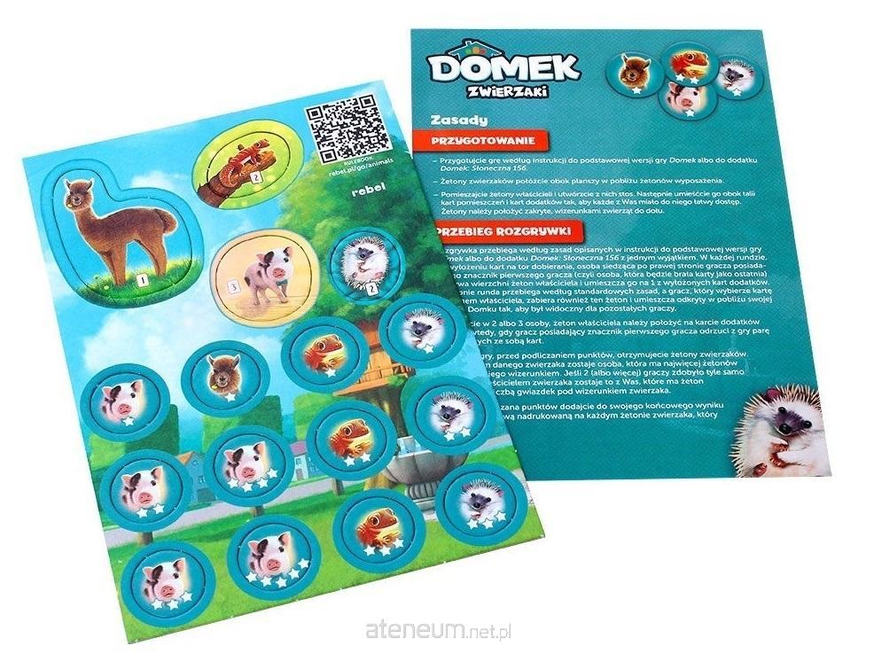 Dodatek Domek: Zwierzaki wprowadza do gry Domek 4 żetony zwierzaków i 12 żetonów właścicieli. W każdej rundzie możecie zdobyć 1 żeton właściciela. Na koniec rozgrywki każdy ze zwierzaków zamieszka w Domku tego z Was, kto zdobył najwięcej żetonów z wizerunkiem danego zwierzaka.
