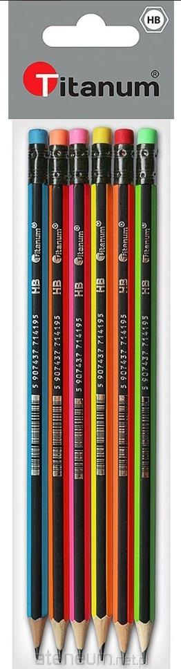 Ołówek z gumką trójkątny HB neonowy 6szt