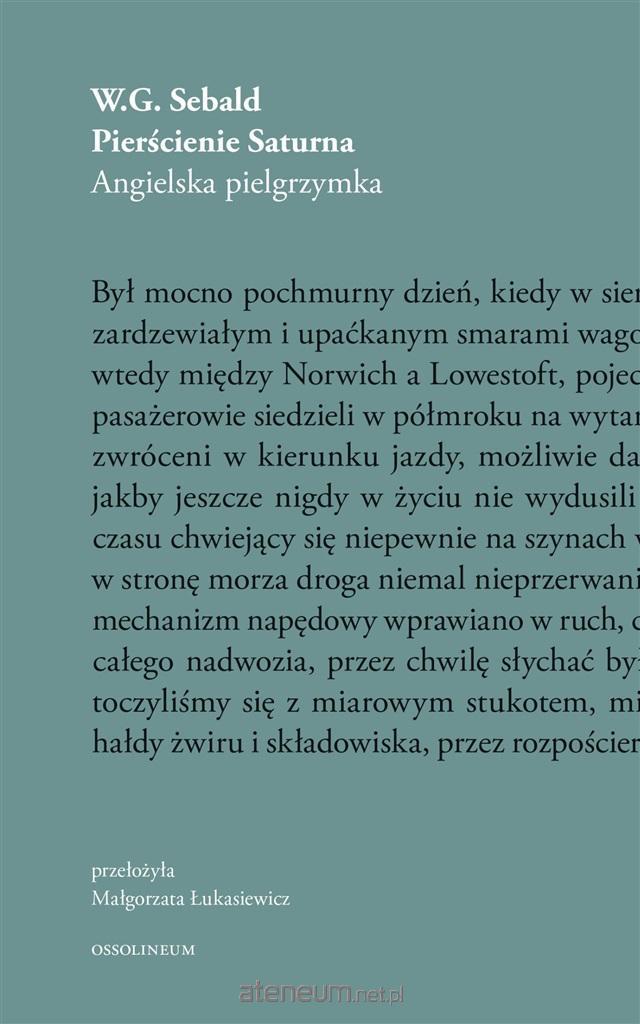 Opowieść o podróży, w której najważniejszym bohaterem jest czas. Narrator, fikcyjne alter ego autora, wyrusza w meandryczną wędrówkę po odległych zakątkach Anglii Wschodniej, odkrywając niezwykłe losy podupadających miasteczek i opuszczonych zamków. Ale każdy cel okazuje się jedynie przystankiem, maleńkim punktem w rozległej sieci zapomnianych historii i dalekich krain. Pierścienie Saturna są wyjątkowym popisem erudycji, w którym skojarzenia, odczucia i dawno pogrzebane wspomnienia splatają się w jedną narrację o niepamięci i widmach przeszłości najważniejszych motywach twórczości Sebalda. Z właściwą sobie swadą pisarz łączy esej z fikcją literacką, miesza własne wyobrażenia z wydarzeniami historycznymi, śledzi wielkie opowieści, a przede wszystkim to, co kryje się pod ich podszewką. Mogłoby się wydawać, że Pierścienie Saturna to książka o przemijaniu i upadku, ale to także próba zniesienia granic na pierwszy rzut oka nieprzekraczalnych; zderzenie krążących wokół tytułowej planety pierścieni.