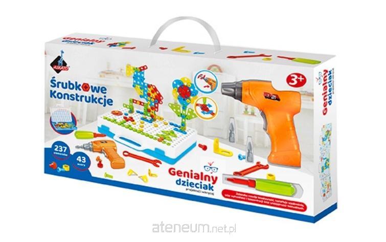 Elementy zestawu można dowolnie ze sobą łączyć ,przykręcać rozkręcać i wielokrotnie zmieniać schematy przy pomocy wiertarki. Można bawić się w płaszczyźnie i przestrzeni. Zabawka jest przyjemną i przyswajalną dla dziecka formą nauki. Kształtuje wyobraźnie, uczy wytrwałości i koncentracji oraz rozwija umiejętności manualne. Rozwija kreatywność, która zaowocuje w kolejnych etapach nauki. Pamięć mechaniczna przekształca się w pamięć logiczną. POLSKIE OPAKOWANIE Zestaw zawiera 237 elementów: śrubokręt, wiertarkę, śrubki, podkładki, elementy geometryczne, łączniki.Zestaw zawiera praktyczną walizkę, dzieki której wszystkie elementy bedą zawsze na miejscu. Zasilanie 2xAA (brak w zestawie)