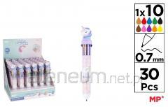 Długopis zapachowy z wkładami w ośmiu intensywnych kolorach: czarnym, niebieskim, zielonym, pomarańczowym, czerwonym, fioletowym. Jego dodatkowym atutem są słodkie, przyjemne zapachy każdego z kolorów, które uatrakcyjniają produkt i sprawiają, że dzieci chętniej po niego sięgają. Jego precyzyjna końcówka ułatwia pisanie oraz dokładne wyróżnienie odpowiednich fragmentów tekstu. Funkcja 8 w 1 sprawia, że jest on niezbędny w piórniku każdego dziecka.