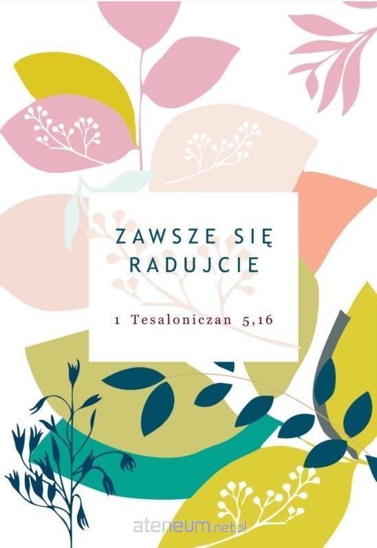 Kartka składana z kopertą.Kartka zawiera tekst:Zawsze się radujcie. I Tesaloniczan 5,16W kartce możesz wpisać dowolny tekst lub życzenia na dowolną okazję.