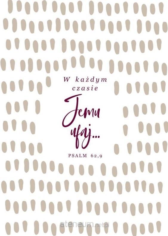 Kartka składana z kopertą.Kartka zawiera tekst:W każdym czasie jemu ufaj. Psalm 62,9W kartce możesz wpisać dowolny tekst lub życzenia na dowolną okazję.
