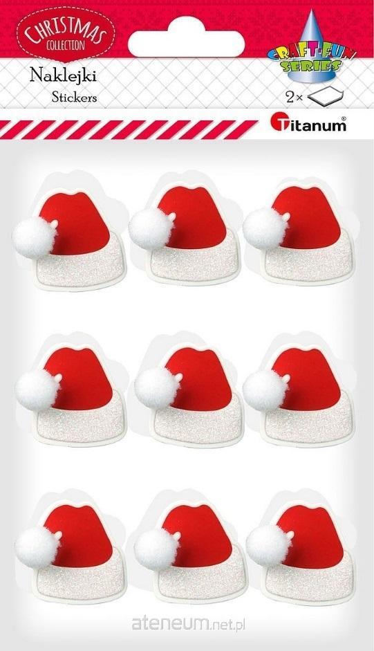 Naklejki papierowe 3D z pomponem. Kształty: czapki Mikołaja. Kolor: czerwono-białe. Wymiary: 30 x 30 mm. 2 plansze - 18 szt.
