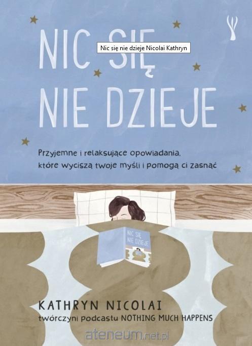 Zapracowane i zabiegane umysły potrzebują odpoczynku. Niezależnie od tego, czy masz problemy z zasypianiem, czy budzisz się w środku nocy i nie możesz zasnąć, czy odczuwasz niepokój za dnia sięgnij po książkę Nic się nie dzieje. Kathryn Nicolai podsunie ci w niej najzdrowszy możliwy sposób na uspokojenie umysłu przed snem współczesne, pełne ponadczasowego klasycznego uroku opowieści na dobranoc. W uwielbianym przez miliony słuchaczy podcaście Nothing Much Happens Kathryn odkrywa i kontempluje słodkie chwile radości, szczęścia i relaksu. Przyglądanie się kwiatom bzu na opuszczonej farmie wiosną. Obserwowanie świetlików z tarasu w letni wieczór. Zwiedzanie pobliskiej wytwórni cydru jesienią. Podziwianie skrzących się w słońcu drzew podczas spaceru z przyjaciółmi w zimowym parku. W książce Nic się nie dzieje znajdziesz wiele cudownie kojących opowiadań. Ubarwiają je piękne ilustracje Li Le Pivert, pomysły na relaksujące rytuały i piękne medytacje, a także przepisy na przepyszne co nieco. Wykorzystując swoje wieloletnie doświadczenie nauczycielki jogi i medytacji, Kathryn kreuje świat bogaty w zmysłowe doznania, które niepostrzeżenie rozwiną w tobie uważność i empatię dla siebie, złagodzą nadwerężone nerwy i wyrobią dobre nawyki wspomagające zdrowy i spokojny sen tak bardzo potrzebny w naszej zabieganej, niespokojnej i ciągle wytrącającej z równowagi codzienności.