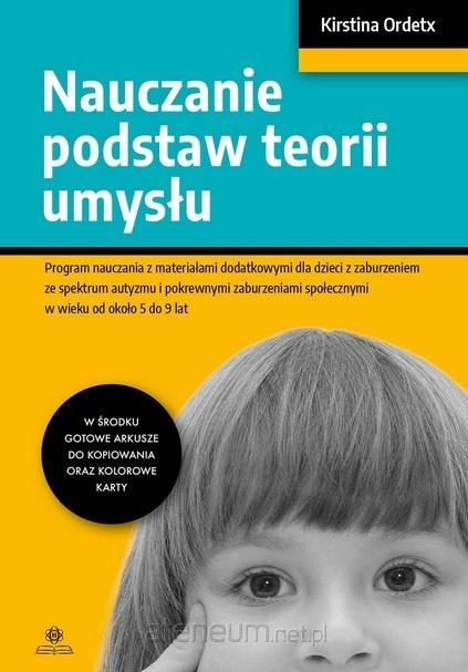 Teoria umysłu to jedno z najważniejszych zagadnień w życiu osób z zaburzeniami ze spektrum autyzmu. Do dziś niewiele materiałów łączyło badania naukowe w tej dziedzinie z praktyką lukę tę wypełnia książka Kirstiny Ordetx. Dwunastotygodniowy program jej autorstwa można w łatwy sposób wykorzystać w klasie lub gabinecie terapeutycznym. Przygotowanie poszczególnych zajęć nie zajmuje dużo czasu, a ich treść znakomicie motywuje uczniów. Niniejsza książka ma potencjał, by zmienić to, jak osoby ze spektrum rozumieją zachowania społeczne, i ułatwić im budowanie relacji międzyludzkich. - dr Brenda Smith Myles, Ohio Center for Autism and Low Incidence W niniejszej książce przedstawiono skuteczny, łatwy do wprowadzenia program nauczania, dzięki któremu dzieci z wysoko funkcjonującym autyzmem, zespołem Aspergera i pokrewnymi trudnościami społecznymi mogą rozwinąć rzetelne podstawy teorii umysłu (inaczej: czytania umysłu lub wnioskowania społecznego), czyli zdolności wyciągania wniosków na temat stanów umysłu innych osób i przewidywania na tej podstawie ich zachowania. Program wykorzystuje podejście multisensoryczne i jest przeznaczony do pracy z dziećmi w wieku 59 lat. W książce czytelnik znajdzie informacje, jak przeprowadzić kolejne zajęcia krok po kroku, a także kolorowe materiały do wykorzystania oraz wzory listów do rodziców, zawierające wskazówki, jak ćwiczyć w domu.