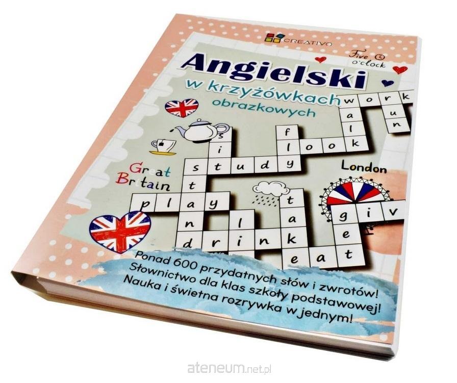 Nauka języka angielskiego przez rozwiązywanie krzyżówek i łamigłówek to czysta przyjemność. Jest to również doskonały sposób na wzbogacenie słownictwa oraz utrwalenie pisowni. Zastosowana metoda obrazkowa znacznie przyśpiesza naukę słownictwa. Poprzez kojarzenie nowych słów z obrazkami uczymy się o wiele szybciej. Książka zawiera ponad 600 podstawowych słów i zwrotów i stanowi świetną pomoc dla uczniów szkoły podstawowej, szczególnie klas III, IV oraz V. Książka wydana jest w formie kołonotatnika co bardzo udogadnia uzupełnianie ćwiczeń oraz rozwiązywanie krzyżówek. Liczba stron:148