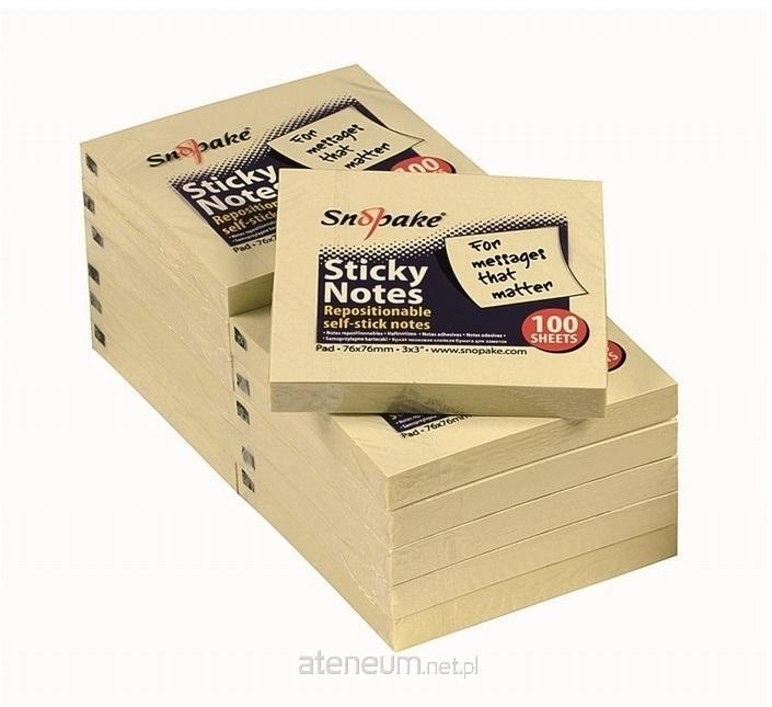 Bloczek samoprzylepnych karteczek marki Snopake, w kolorze żółtym. Opakowanie zawiera łącznie 100 szt. karteczek o wymiarze 76x76 mm, które można swobodnie przyklejać i odklejać. Idealnie nadają się do zaznaczania dokumentów i opisywania stron.