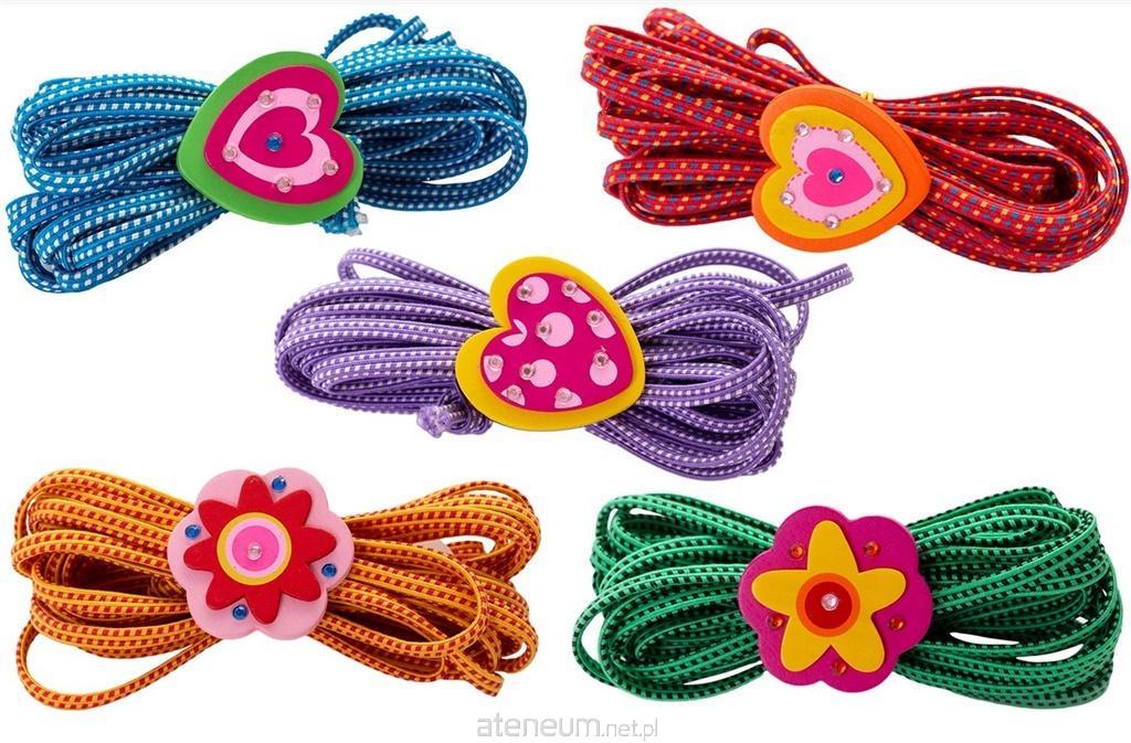 Mix wzorów, towar wysyłany losowo. To prosta zabawka w 5 kolorach o długości około 5 m. Służy ona do różnych gier na zewnątrz, jak i w domu, w tym prostych ćwiczeń fizycznych. Guma do skakania pozwala na utrzymanie sprawności fizycznej w niezwykle przyjemny sposób. Można używać ją w domu, w ogrodzie, można grać samemu lub w kilka osób. W zestawie znajduje się drewnina ozdoba ( serduszko, kwiatek) , która pilnuje, aby guma się nie rozwinęła. wiek 3+ Pakowanie: 15 szt./display