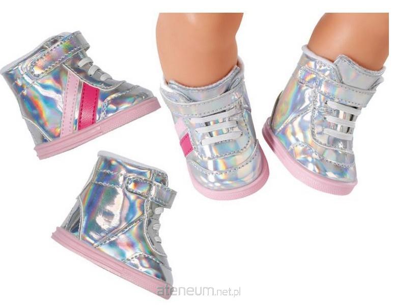BABY bornuwielbia nosić modne obuwie. Już z odległości widać holograficzne wzory na bucikach. Po bokach buty ozdobione są paskami w kolorze różanym i różowym. Po zawiązaniu sznurówek i zabezpieczeniu rzepami BABY bornmoże w nich odbyć spacer choćby na księżyc.