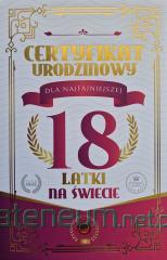 Karnet Certyfikat Urodzinowy 18 urodziny damskie