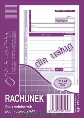 Rachunek dla zwolnionych podmiotowo z VAT 233-3