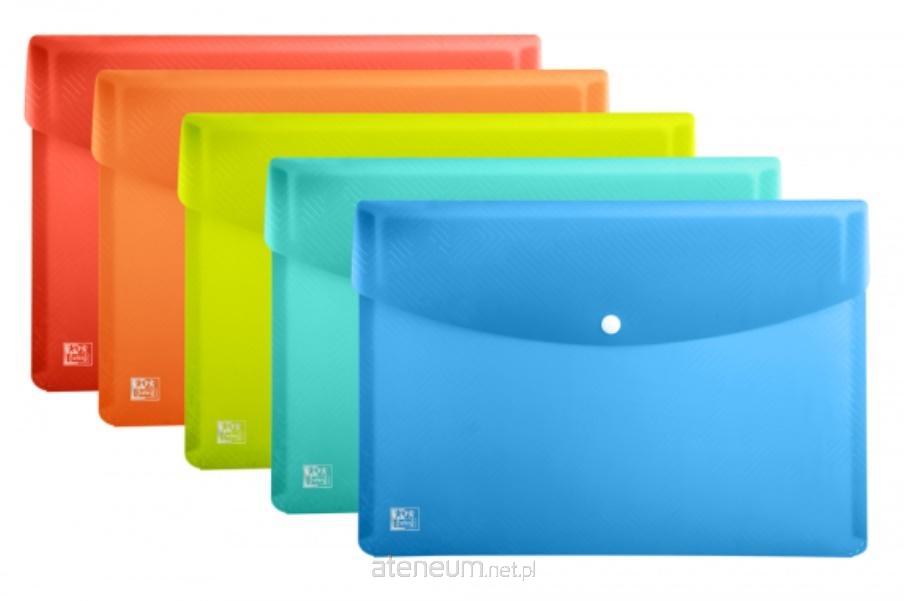 Mix w opakowaniu zbiorczym, 5 sztuk. Teczka kopertowa na zatrzask wykonana z mocnego polipropylenu o grubości 300 mic. Zamknięcie na zatrzask skutecznie chroni przed wypadaniem. Zaokraglone rogi dbaja o bezpieczeństwo zarówno biurka, wnętrza torby czy nawet ubrania.