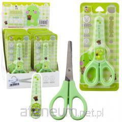 Nożyczki szkolne z osłonką oburęczne zielone 14cm