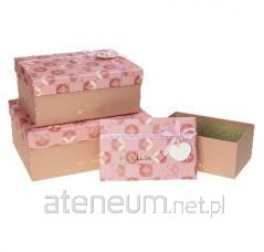 Pudełko prostokątne z kokardą 3szt różowy ROZETTE