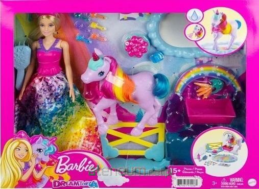 Ten zestaw Barbie Dreamtopia inspiruje do baśniowej zabawy w opiekę i naukę toalety z lalką księżniczką Barbie, jednorożcem i magiczną funkcją zmiany koloru.