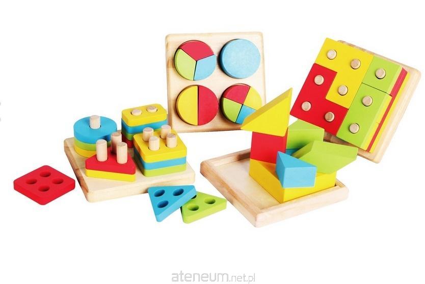 4 drewniane podstawy do układania różnych kombinacji klocków. 4 kolory różnorodnych figur geometrycznych . Paliki ułatwiające dopasowanie odpowiednich elementów. Wspomaga rozwój: małej motoryki, koordynacji oko - ręka i logicznego myślenia. Uczy logicznego myślenia, kolorów, kolejności, liczenia. Wykonany jest z wysokiej jakości drewna. Nie ma ostrych kształtów. Do produkcji zabawki użyto nietoksycznych farb. Wiek: +1.5 - 6 lat