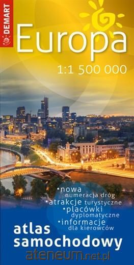 Atlas samochodowy Europy w Skali 1:1 500 000. Atlas zawiera ponadto m.in.: podział polityczny Europy, mapy przeglądowe 1:4000 000, dziedzictwo kulturowe i przyrodnicze, polskie przejścia graniczne, polskie placówki dyplomatyczne, leki niebezpieczne dla kierowców etc..