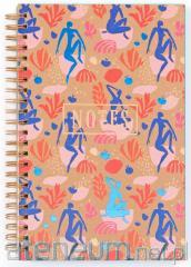 Ekskluzywny notes inspirowany malarstwem abstrakcyjnym. 192-stronicowy, ozdobny notes ekologiczny w oprawie spiralowej, łączy w sobie okładkę z tektury 650g z recyklingu z papierem kremowym 70g. Kompaktowy notes w formacie 135 mm x 205 mm bez problemu zmieści się do torebki czy plecaka. Notes rozkłada się na płasko, dzięki czemu bez problemu wypełnisz go dowolną treścią od niezobowiązujących zapisków po bullet journal. Kolorowe tłoczenia i niebieska wyklejka dodatkowo podkreślają gustowną stylistykę notesu.