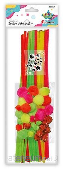 Zestaw druciki, pompony, oczka pomarńczowy 80szt