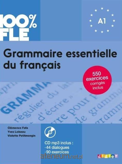 Gramatyka do nauki francuskiego na poziomie A1. 550 ćwiczeń pisemnych i ustnych dla początkujących, płyta CD mp3 z 44 dialogami i 90 zadaniami, gramatyka kontrastywna po angielsku, hiszpańsku, arabsku i chińsku, przykłady uczące poprawnej wymowy, 15 podsumowań, wszystkie odpowiedzi do ćwiczeń i transkrypcje nagrań, możliwość pobierania plików audio ze strony www.centpourcentfle.fr.