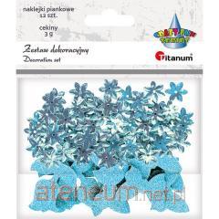 Cekiny kwiaty + naklejki mix błekitne 12szt