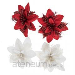 Kwiaty poinsecji białe, czerwone 14cm 4szt