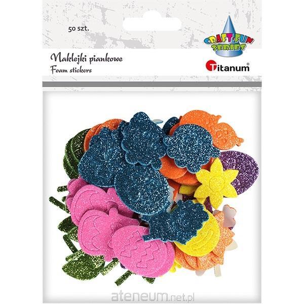 Naklejki piankowe brokatowe: pisanki, króliczki, głowy króliczka, marchewki, kwiaty, 50 sztuk.