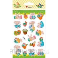 Naklejki piankowe: zające 32 x 30 mm, motyle 30 x 22 mm, głowy zająca 21 x 29mm, 50 sztuk.