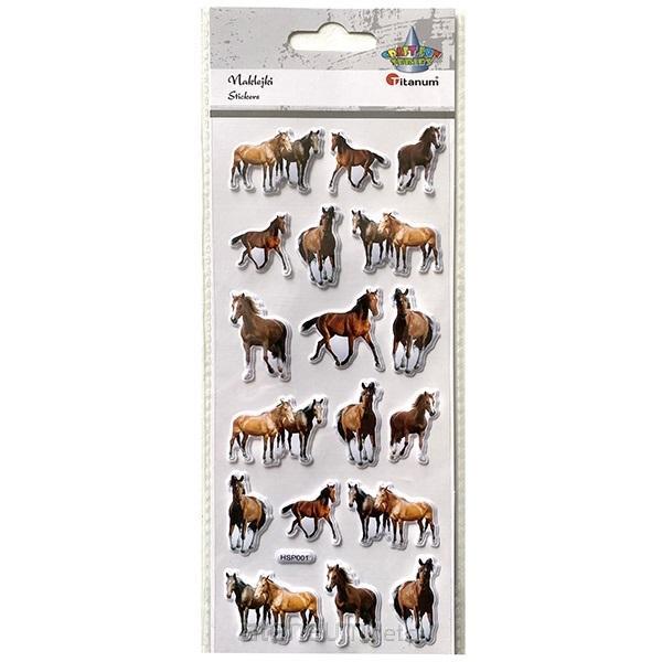 Naklejki wypukłe, miękkie: konie 18 sztuk.