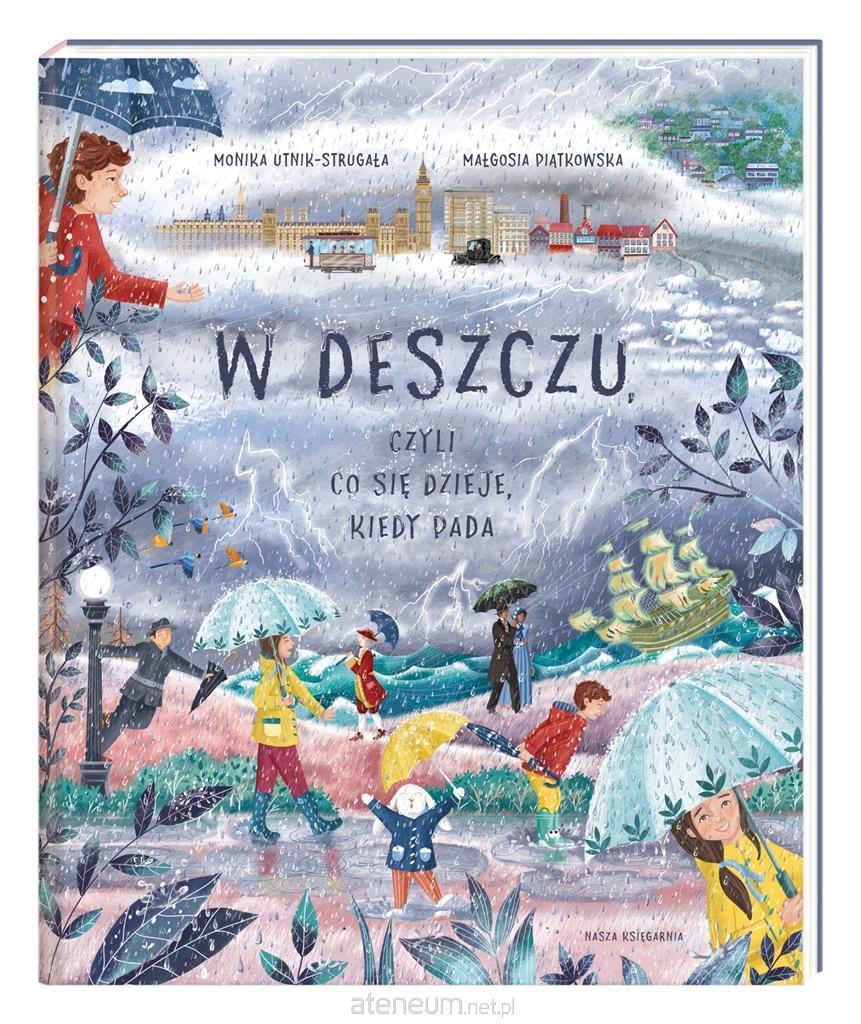 Kiedy moja córeczka była mała, bardzo bała się burzy. Postanowiłam więc, że kiedyś jej wyjaśnię, dlaczego pada deszcz, jak powstają pioruny i czy można się przed nimi uchronić oraz skąd się bierze tęcza. Chciałam, żeby zrozumiała zachodzące w przyrodzie zjawiska i przestała się ich lękać. Dziś mogę z dumą powiedzieć, że Ania z radością biega po kałużach, a co więcej wcale nie boi się już burzy. Przed wami książka, z której dowiecie się wszystkiego nie tylko o deszczu, lecz także o przewidywaniu pogody, kaloszach czy wycieraczkach samochodowych! Monika Utnik-Strugała absolwentka polonistyki i italianistyki Uniwersytetu Warszawskiego, dziennikarka, wieloletnia redaktorka magazynów wnętrzarskich. Zadebiutowała książką dla dzieci Mamma mia. Włochy dla dociekliwych. Lubi włoski design i malarstwo trecenta. W mieszkańcach Italii najbardziej docenia ich miłość do życia. Wolne chwile spędza w ukochanym domu na wsi. Małgosia Piątkowska ilustratorka. Obecnie mieszka w Bristolu w Wielkiej Brytanii. Ukończyła Wydział Ilustracji na University of the West of England (Bristol). Uwielbia swoją pracę, bo to dzięki niej może podzielić się swoim sposobem postrzegania świata. Jej największą inspiracją jest dzieciństwo i związany z nim surrealizm. Nałogowa rysowniczka. Posługuje się technikami tradycyjnymi, ale też z entuzjazmem podchodzi do programów graficznych. Powyższy opis pochodzi od wydawcy.
