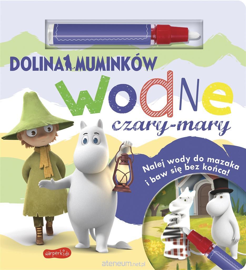 Witaj! Oto Muminek, ciekawski troll, który z radością oprowadzi cię po Dolinie Muminków! Spotkasz jego rodzinę i przyjaciół. Dowiesz się, co Włóczykij, Ryjek, Panna Migotka i Mała Mi lubią robić w wolnym czasie. Dołącz do zabawy i maluj bez końca. Aby zobaczyć wszystkie postacie i przedmioty ukryte w tej książeczce, wystarczy zamalować białe pola na każdej stronie zwykłą wodą. A gdy papier wyschnie, ilustracje znów staną się niewidoczne i zabawę można zacząć od początku. Malowanie ułatwi dołączony do książki flamaster, który można ponownie napełniać wodą! Wodne czary-mary to bezpieczna kartonowa książka z zaokrąglonymi rogami. Jest odporna na najróżniejsze dziecięce eksperymenty, a poręczny format pozwoli zabrać ją ze sobą w odwiedziny do babci albo na spacer do parku. Kolorowanie czystą wodą nie pozostawia po sobie bałaganu jak malowanie farbami, papier nie przemięka, a tusz użyty w książeczce nie rozpuszcza się i nie plami. Jeśli więc podczas zabawy woda się wyleje, wystarczy ją po prostu wytrzeć, a otoczenie, ubranko, rączki małego artysty albo nowa biała kanapa pozostaną nietknięte!