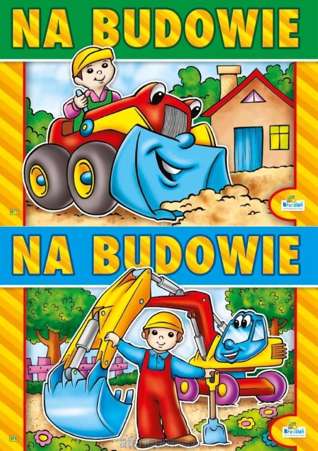 Na budowie - malowanka wzbogacona krótkimi wierszykami.